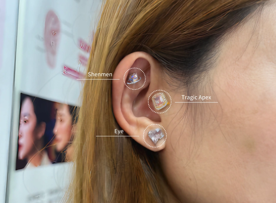 It is said that the outer part of the ear relates to the “sympathetic nerve” responsible for activity or tension, while the inner part of the ear relates to the “parasympathetic nerve” that allows the body to rest and relax. Stimulating points like “Shen Men,” which is expected to stabilize the autonomic nerves essential for activity, is recommended.